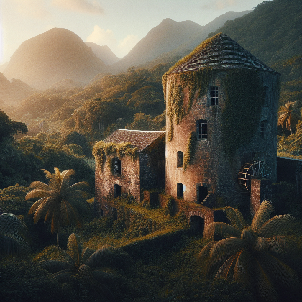 The history of sugar mills on Nevis dates back to the late 17th century when the island became one of the leading sugar producers in the Caribbean. The introduction of sugar cane from Brazil transformed the economy of Nevis, catapulting it into immense wealth and making it a central player in the transatlantic sugar trade. These mills were the backbone of this thriving industry, where sugar cane was crushed to extract the juice, which was then boiled down into sugar.